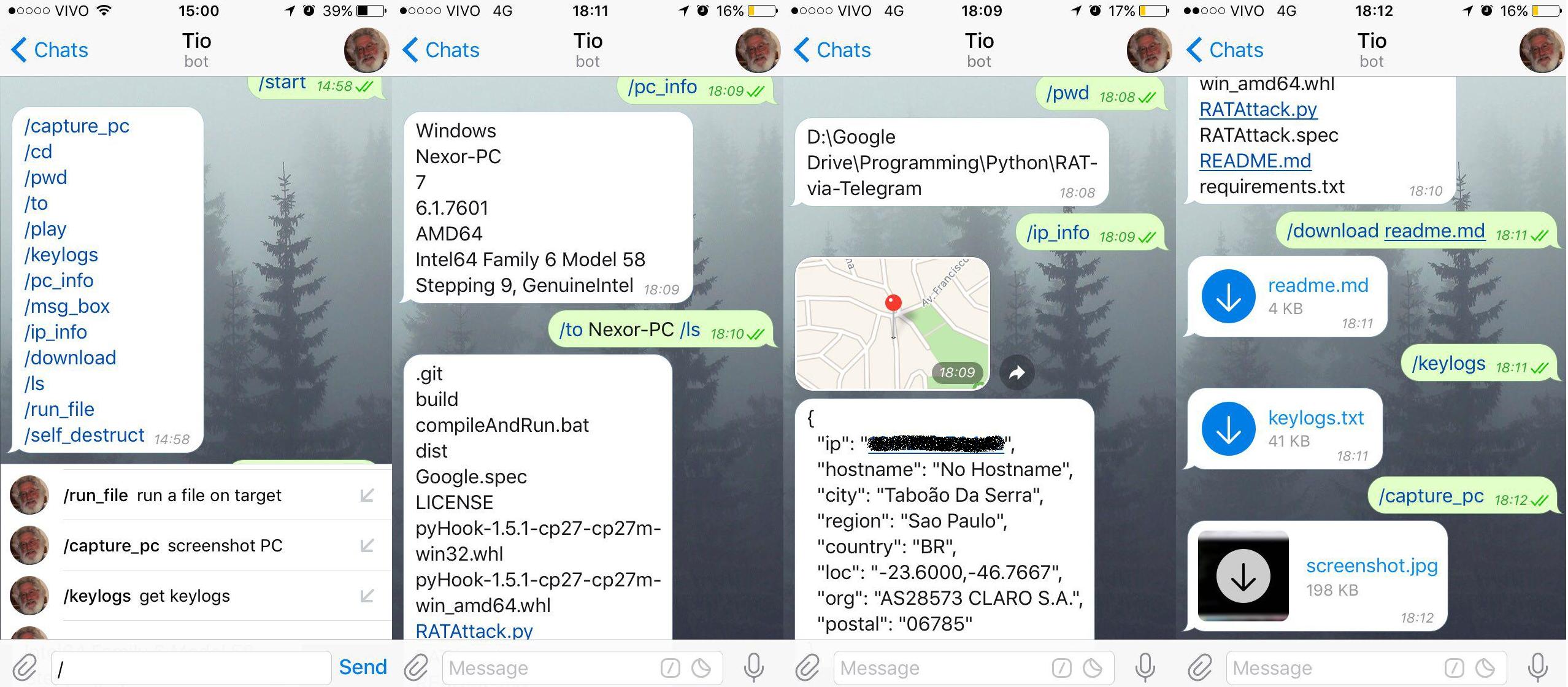 python RATAttack.py. - Find your bot on telegram and send some command to the bot to test it.