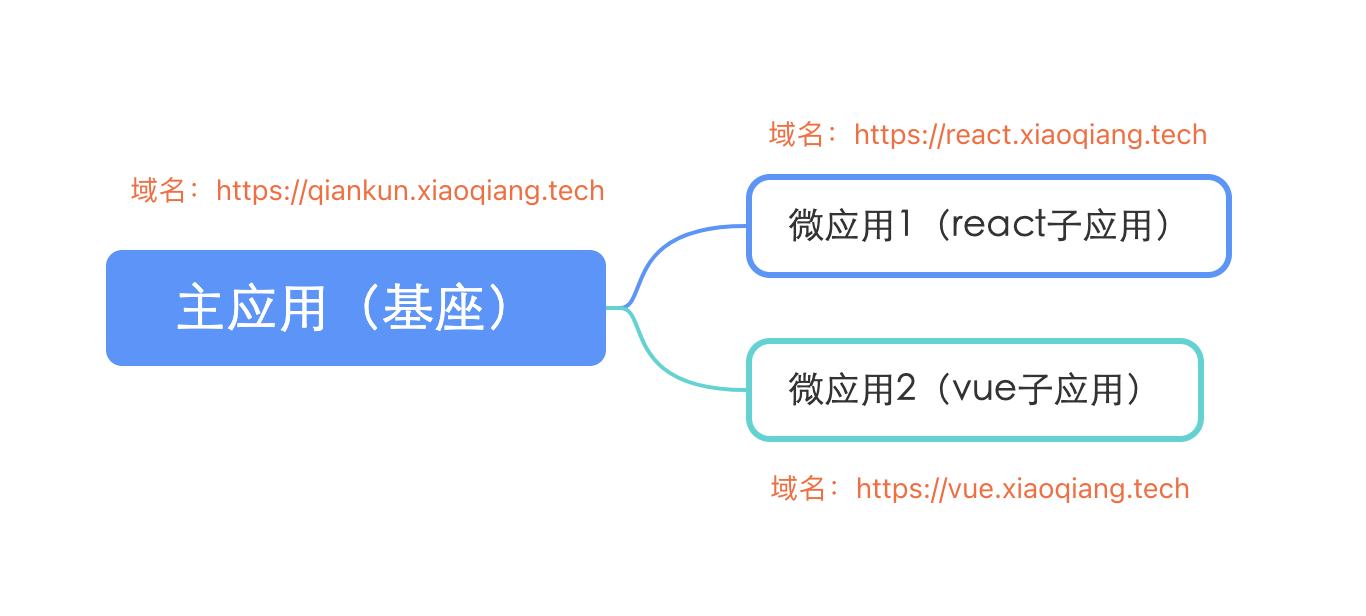 - 独立仓库,独立部署,独立域名:https://qiankun.xiaoqiang.tech;