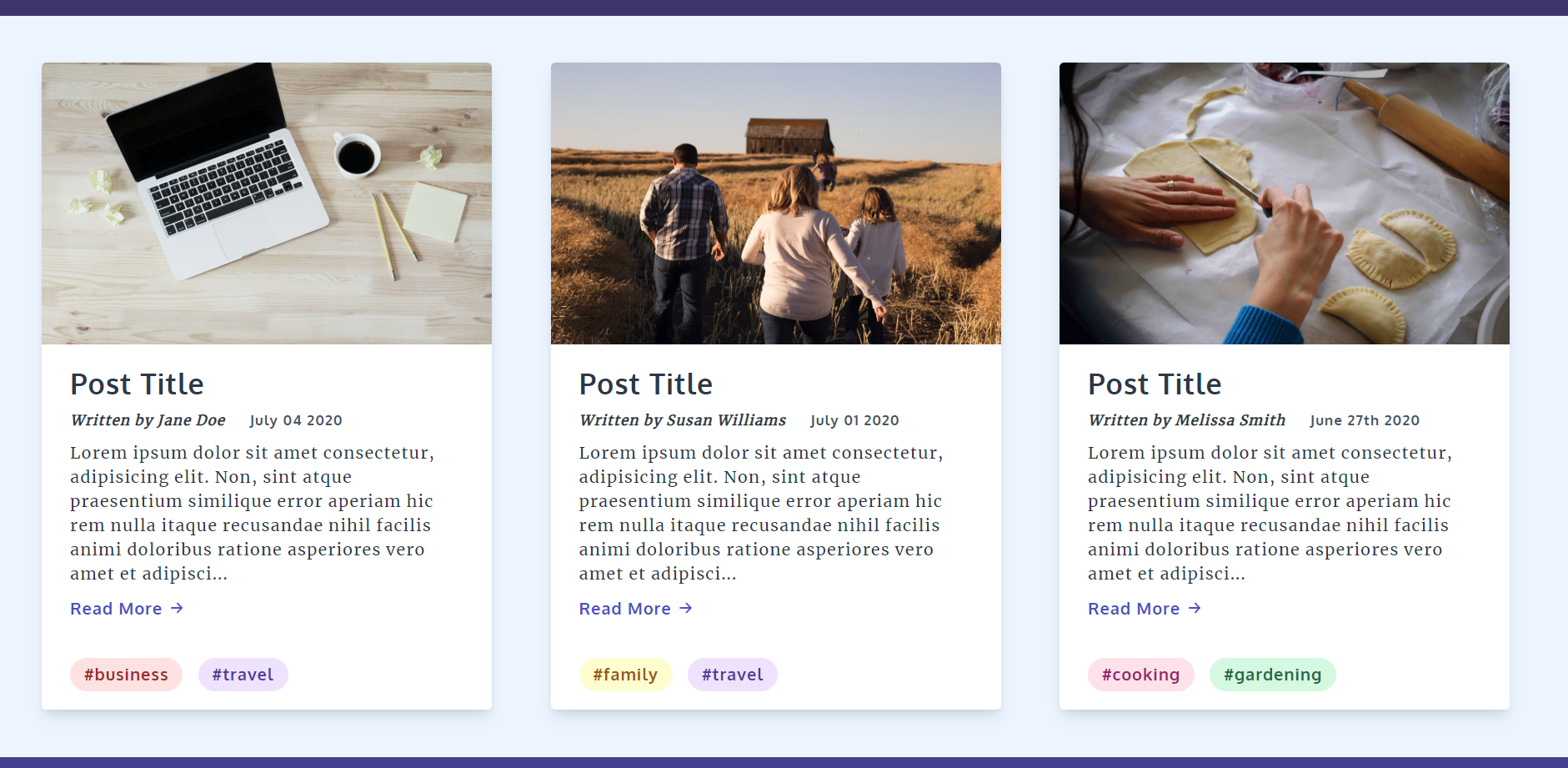 📷 Tailwind Blog Template built with TailwindCSS Mobile Responsive Homepage has Featured Post with Sidebar (About Section and Instagram Feed) Card grid displaying recent posts Passes Axe beta and Lighthouse tests - Homepage - - Sign Up Section - - Recent Posts - - Footer -