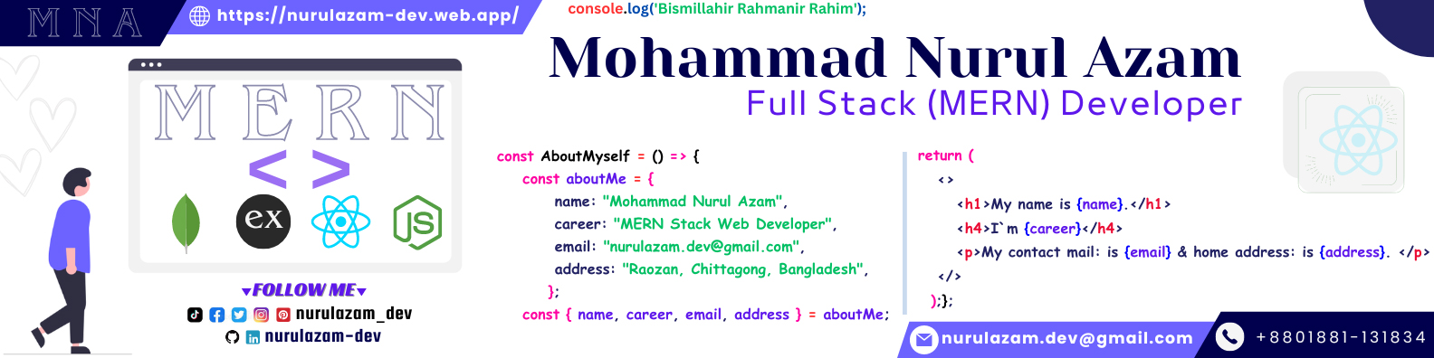 I'm Mohammad Nurul Azam. I'm a Front End Developer || React Developer || Full Stack Web Developer || JavaScript Developer.