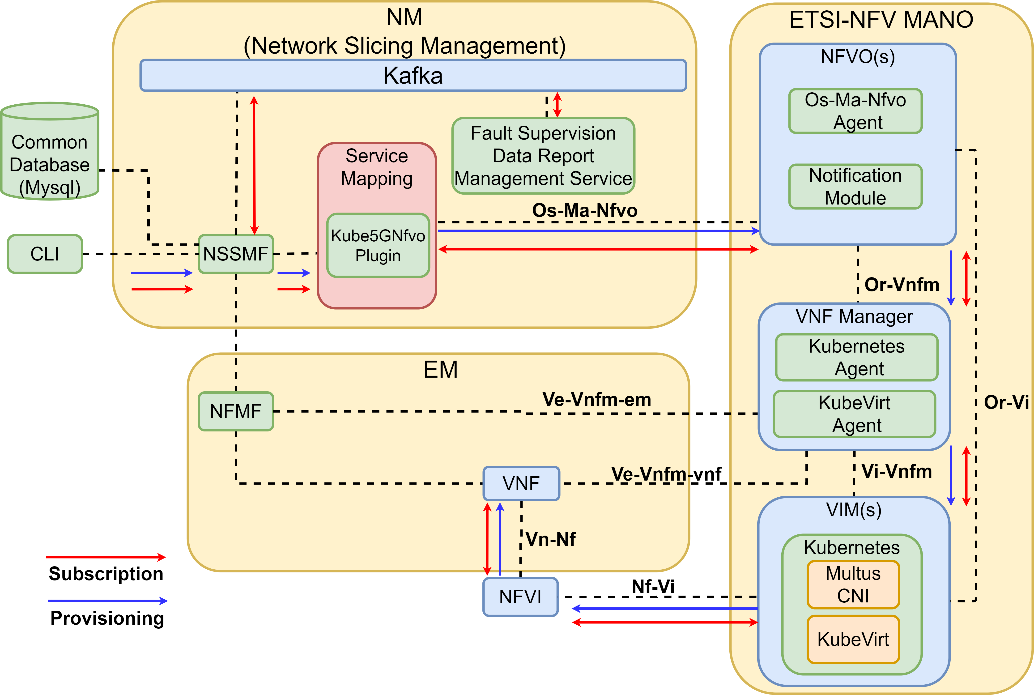 - A Service Mapping Plugin framework is designed to deploy the Network Slice Subnet Instance (NSSI) via os-ma-nfvo APIs and provide the selection of the open source NFV Orchestrators, e.g. Kubernetes-based Kube5gnfvo (default), OpenStack-based Tacker etc.