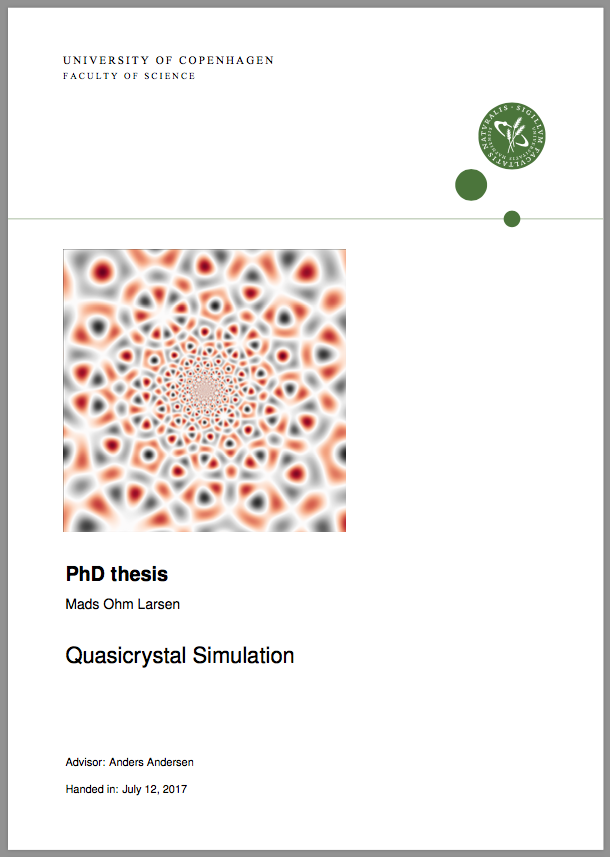 Sets the title of the document. | \title{Quasicrystal Simulation} |