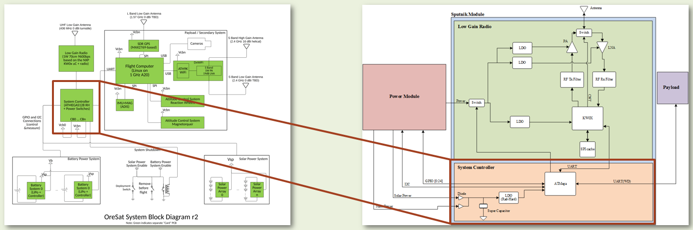 The System Controller (SC) is part of the sputnik capstone project and is a robust module that is a vital piece of the avionics stack for the cubesat. It is tasked with performing the most critical job of all: monitoring the well-being of the stack and power cycling modules when Single-Event Upsets happen. At the heart of the module will be a radiation hardened microcontroller that communicates with the Low Gain Radio and Payload via UART. There are power switches with circuit breakers ("efuses") connected to the microcontroller that allow it to control the flow of power to all of the other systems/modules on the CubeSat.