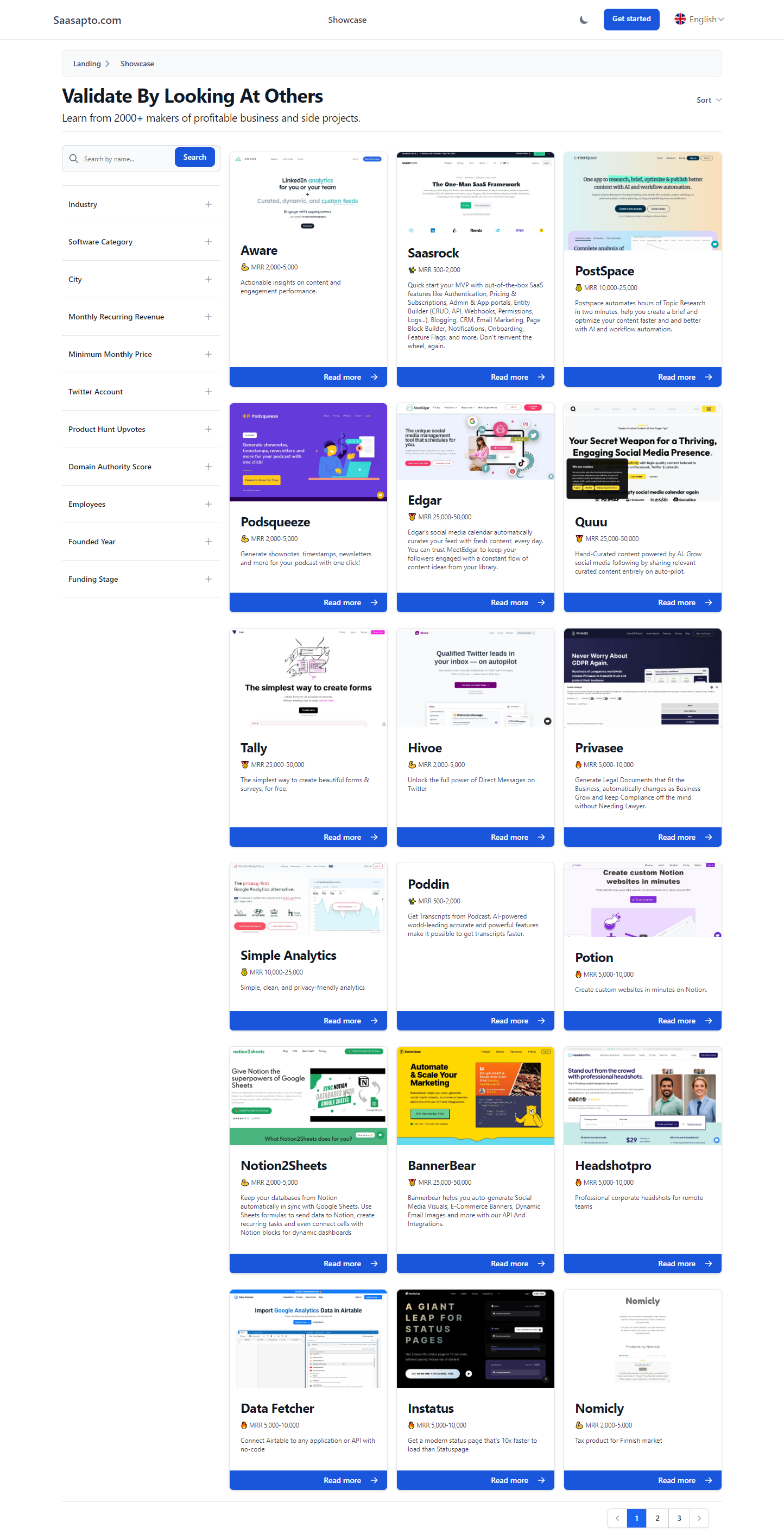 Saasapto.com: Find, validate, and launch your perfect SaaS project. Showcase for my personal GitHub portfolio.