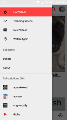 Notice that if you click on your subscription feed or the recently watched tab that it will be completely blank. This is because you are not logged in and you have not watched any videos yet. I would start by logging in. This will unlock many of the features that makes Steemit & Dtube awesome. Press the account icon in the to right of the screen and you will be prompted to a login