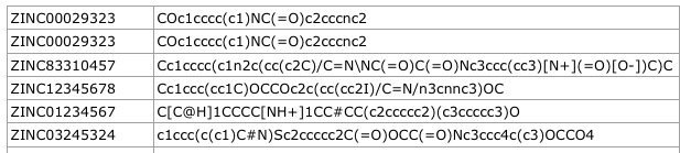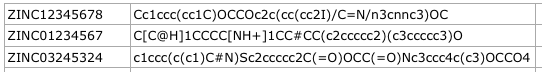 ZINC01234567 ZINC01234568 ...