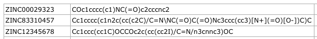 - 2nd column: ZINC ID