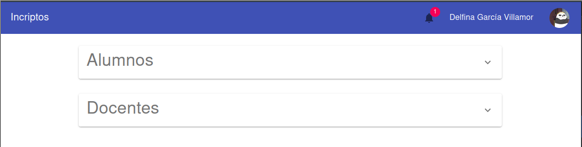 En la pantalla de inscriptos actualmente se están usando acordiones para mostrar tanto alumnos, como profesores.