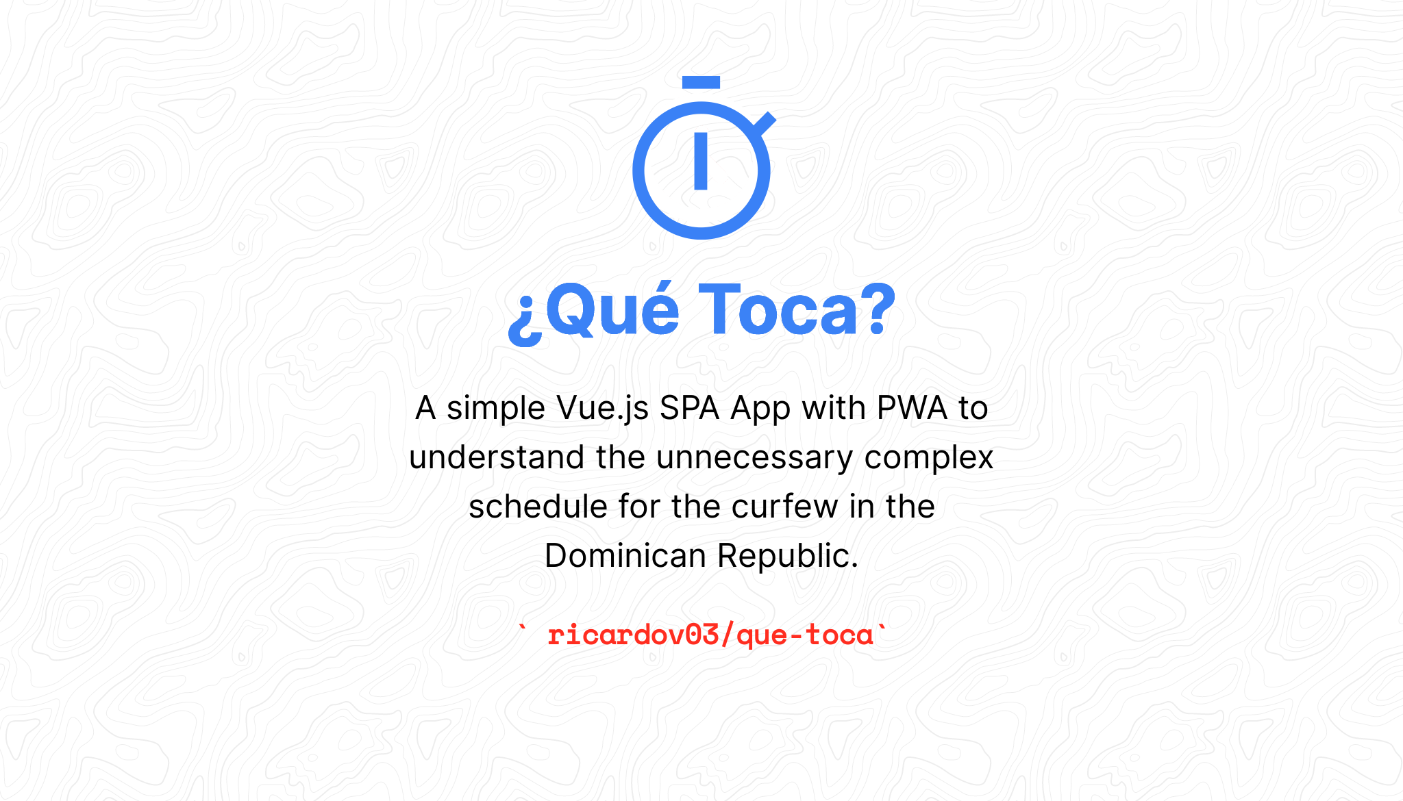 ¿Qué Toca? A simple Vue SPA App with PWA to understand the unnecessary complex schedule for the curfew in the Dominican Republic.