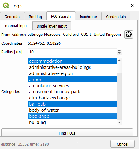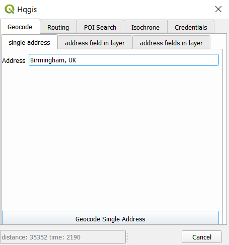 Hqgis is a python based plugin for QGIS that offers access to the HERE API and combines different traffic/routing/geocoding actions in one plugin. With Hqgis you can geocode single and multiple addresses, find routes, places of interests around a or multiple locations and many more. This plugin is designed to work in QGIS 3.4 and above.
