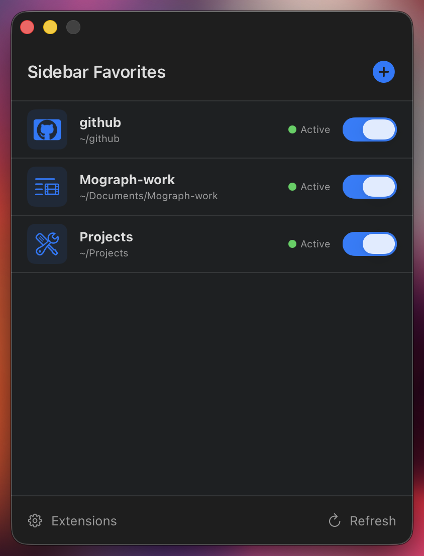 SidebarFavorites Manager: https://github.com/ivg-design/SidebarFavorites