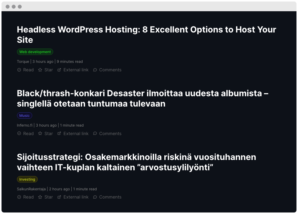 A dark Miniflux theme that aims to be the most readable and modern minimal Miniflux theme out there.