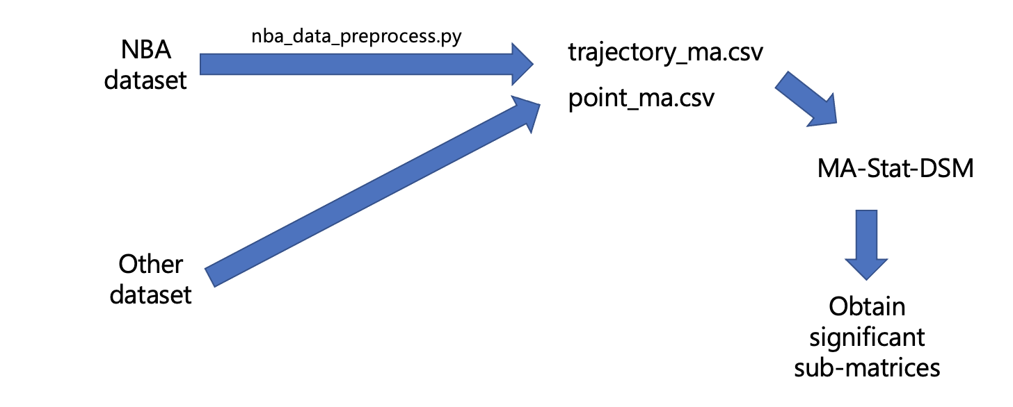 Use nba_data_preprocess.py to create the trajectory_ma.csv and point_ma.csv files, which are input to MA-Stat-DSM.