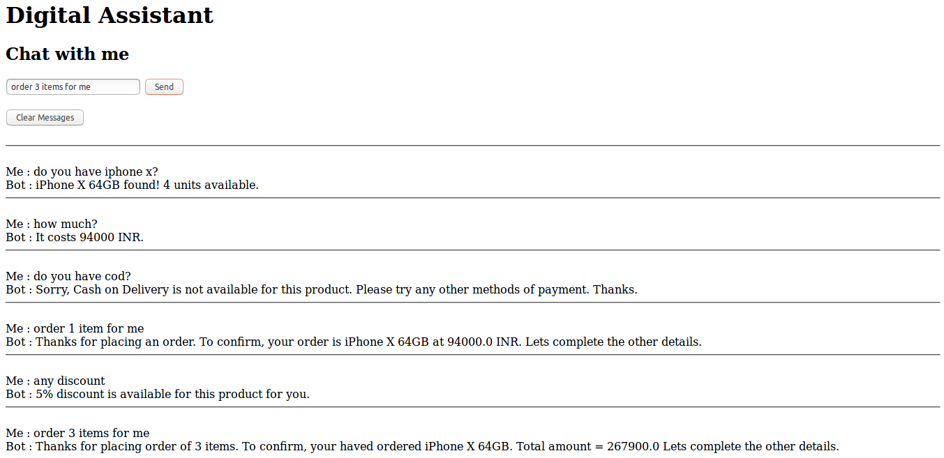 - The bot gives price, COD details, discounts