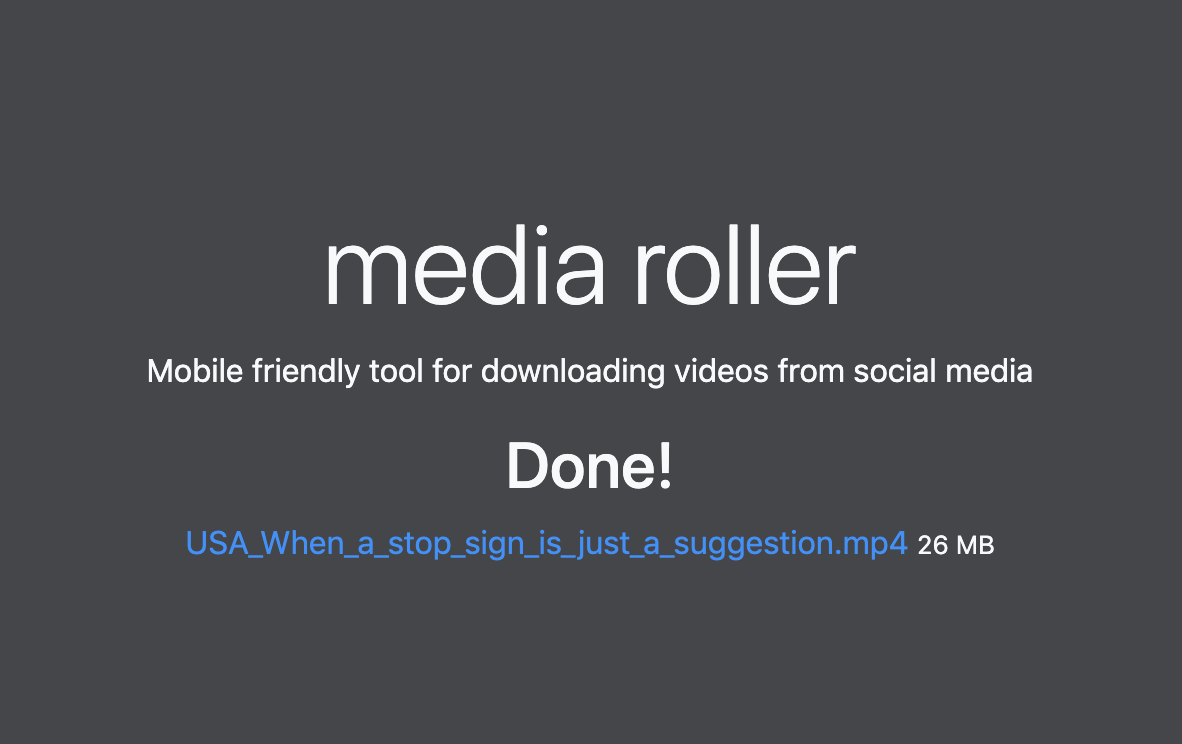 A mobile friendly tool for downloading videos from social media. The backend is a Golang server that will take a URL (YouTube, Reddit, Twitter, etc), download the video file, and return a URL to directly download the video. The video will be transcoded to produce a single mp4 file.