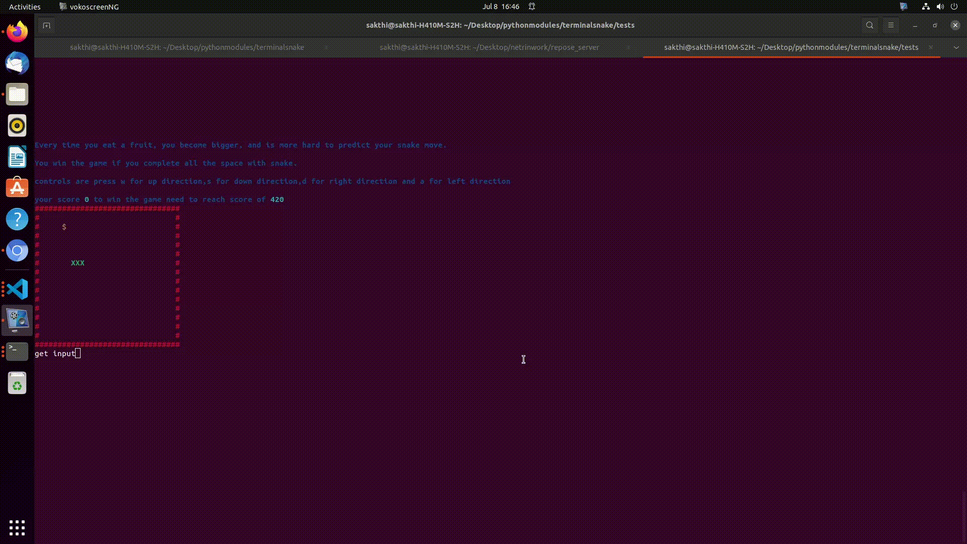 pip install bashsnakegamefrom bashsnakegame.game import SnakeGame