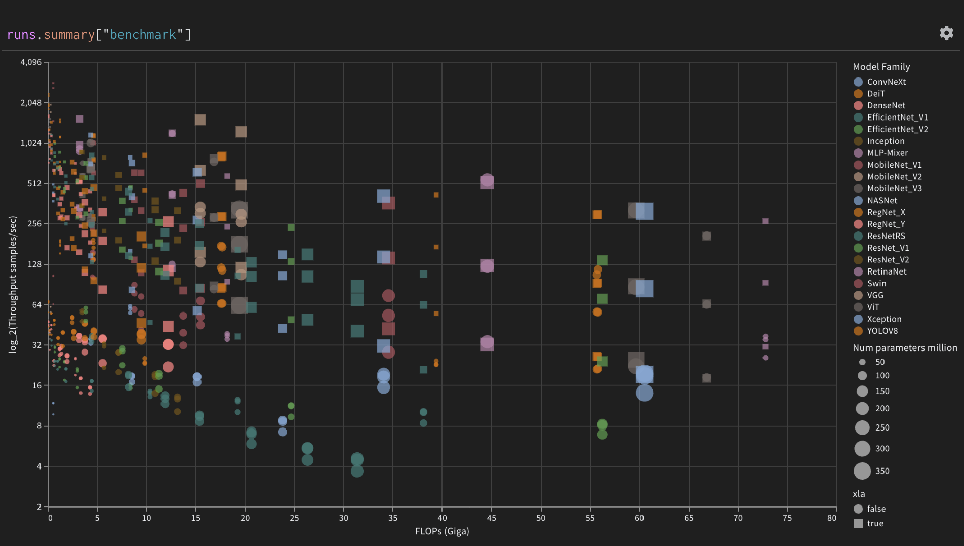 - You can explore the benchmark results here and interact with them: wandb.ai/sayakpaul/keras-xla-benchmarks.