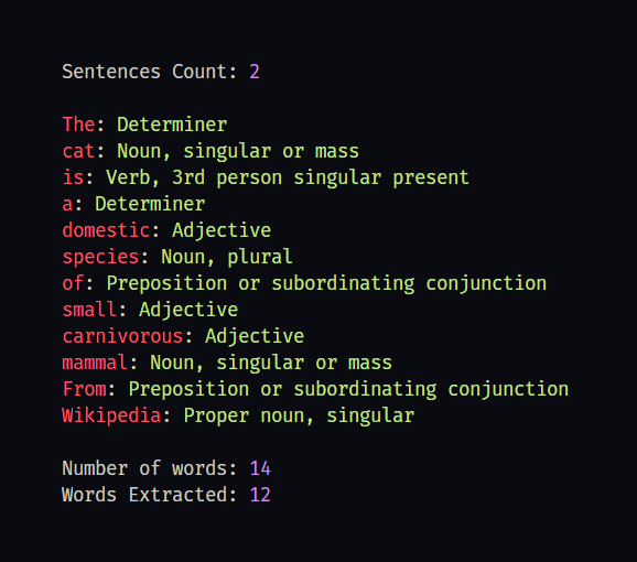 - Multiple filter options (Determiners, Preposition or subordinating conjunction, Cardinal number, Coordinating conjunction)