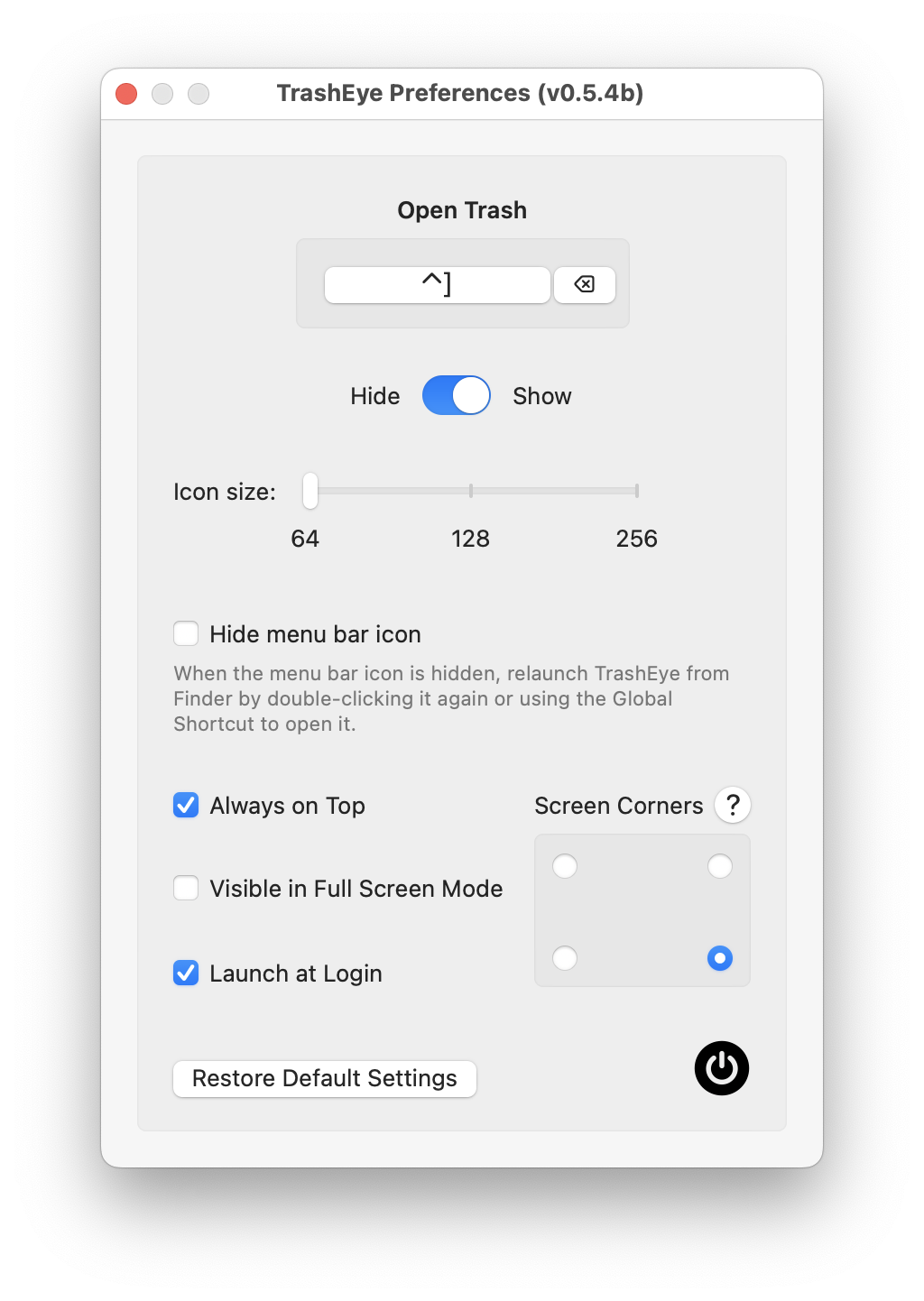 - Add radio buttons allowing to precisely position the trash in the screen corners and keep that position even through screen resolution changes