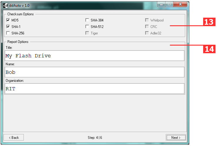 This windows allows the user to confirm his selected options before imaging starts up. The user can smoothly moves back and forth between windows and change options.