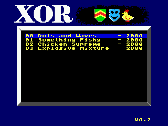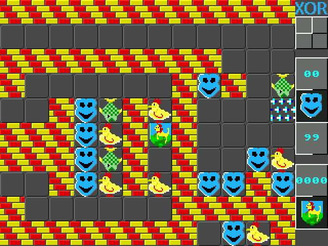 As taken from the original Xor packaging: " There are no random events in XOR's labyrinthine palace, and there is no premium on hand–eye coordination. You have all the time in the world to work out the precise nature of the hazards you encounter. Logical thinking, strategy and tactical problem solving are part of the XOR experience. And XOR is not simply about finding solutions. If you can solve the entire puzzle (15 levels plus an encrypted anagram), you qualify to be a member of the Order of XOR "