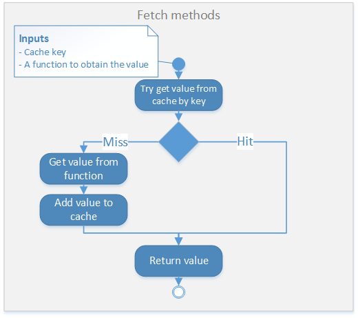 var user = context.Cache.FetchObject<User>(redisKey, () => GetUserFromDatabase(id));The method GetUserFromDatabase will only be called when the value is not present on the cache, in which case will be added to the cache before returning it.
