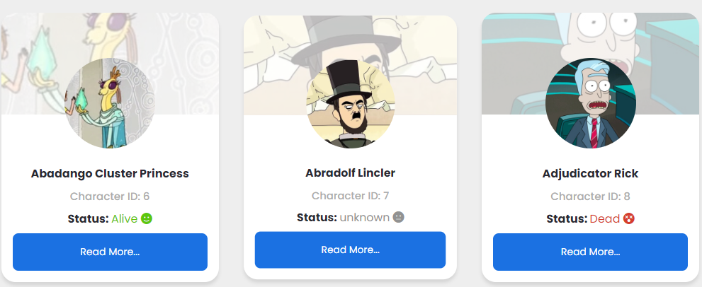 - Loading rick and morty characters from https://rickandmortyapi.com/
