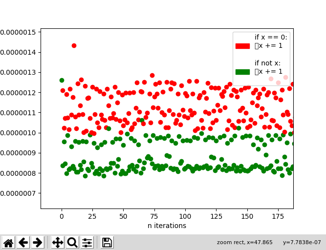 unazed@unazed ~ python3.7 -m timeit --setup "a = None" -c "a == None"