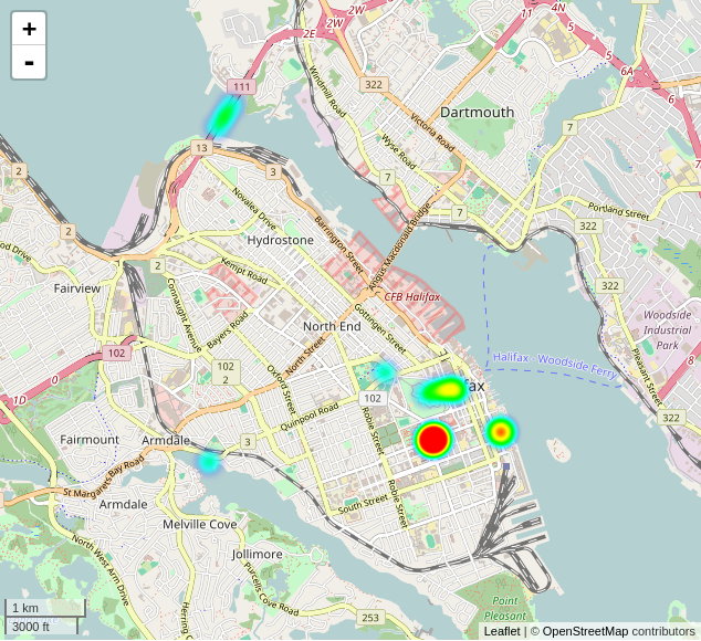 var dataPoints = [[44.6674, -63.5703, 37], [44.6826, -63.7552, 34], [44.6325, -63.5852, 41], [44.6467, -63.4696, 67], [44.6804, -63.487, 64], [44.6622, -63.5364, 40], [44.603, - 63.743, 52]];With this you can add the whole dataset with heatmap.setData(dataPoints).