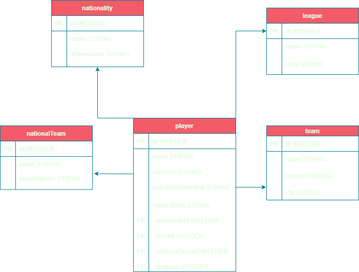 This application implements a microservice system for managing football team players. The microservice system consists of a total of five microservices: Player, Team, Nationality, National Team, and League. The player represents the main ie. composite microservice that is connected to all other services, ie each player has his own team, nationality, national team and league. Management of this system is enabled by performing implemented CRUD operations on microservice instances.