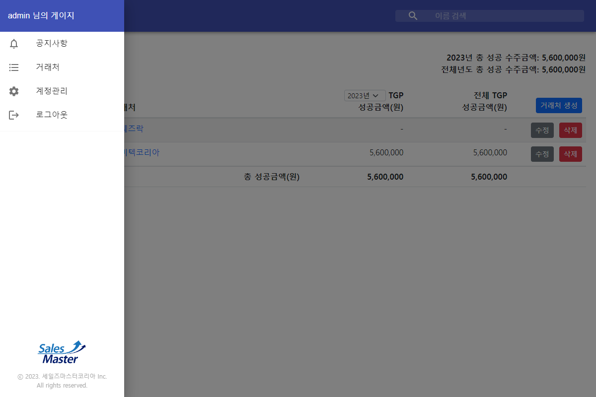 - 연도별/거래처별 성공 수주 금액을 한눈에 볼 수 있습니다.