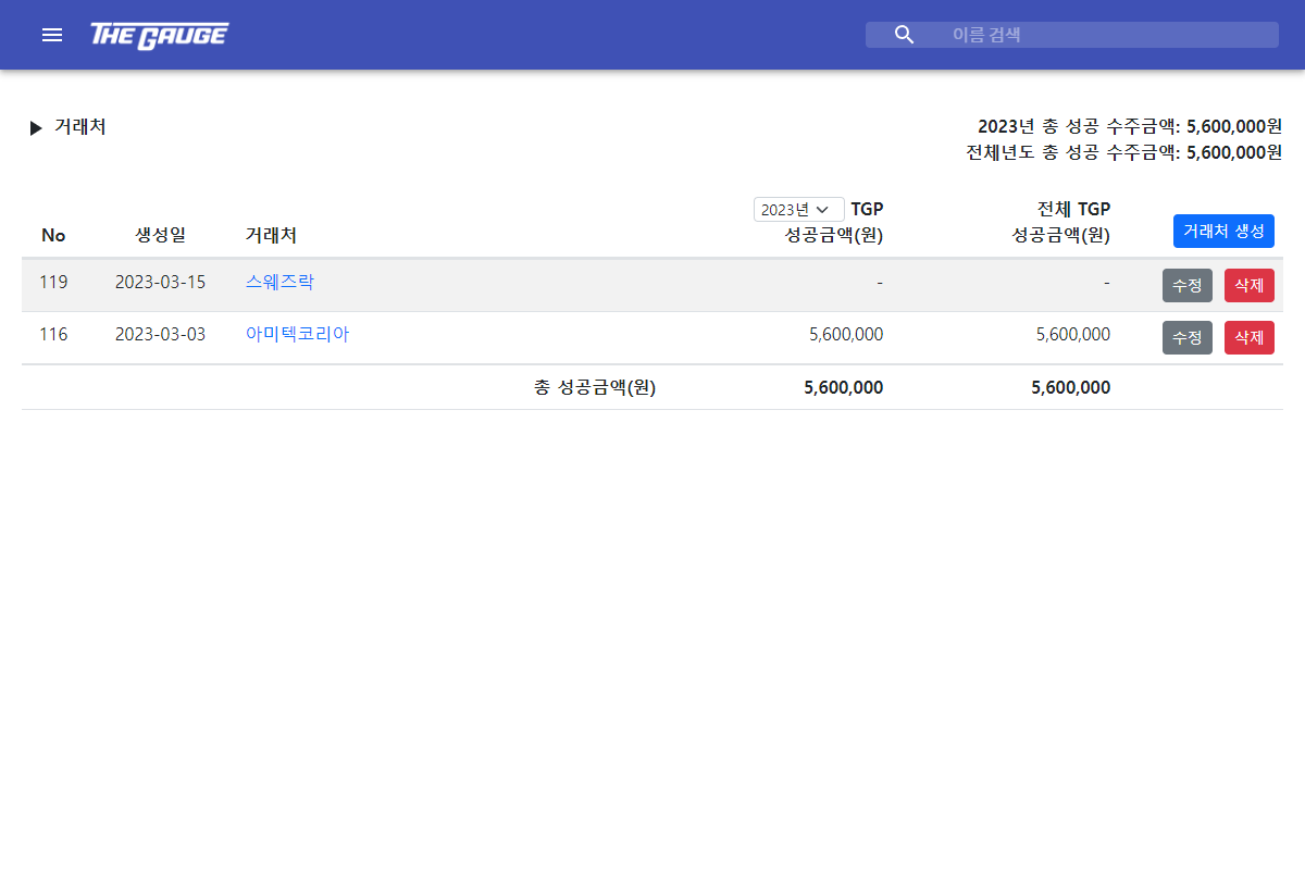 - 연도별/거래처별/TGP별 수주 금액을 한눈에 볼 수 있습니다.