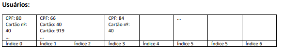 - Os usuários também são indexados por numeração única (CPF), objetivando o acesso à informação, sendo estes indexados em uma estrutura de tabela hash.